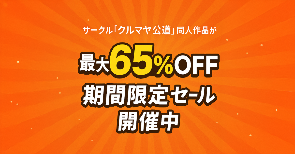 【最大65%OFF】サークル「クルマヤ公道」同人作品セール開催中!|期間限定キャンペーン情報